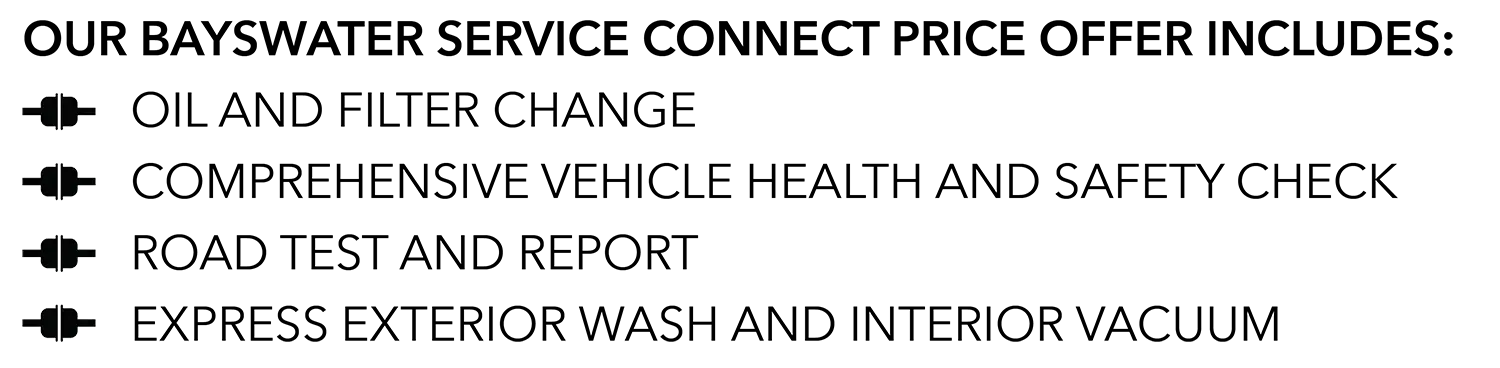 * Offer applies to vehicles outside of their manufacturers warranty (from date of service booking). Offer redeemable from Bayswater Vehicles Service Centres only. Offer oil & filter change, comprehensive vehicle health and safety check, report, and road test. Any repairs or issues identified are not covered by the advertised price. Following customer approval, additional costs for parts and work may be required. A 10% discount will be offered on genuine parts on additional repairs required and approved at the time of service. Bayswater Vehicle Group reserve the right to amend or withdraw this offer at any time. Bayswater Service Connect pricing is not available on all vehicles – please contact us to discuss your vehicle service.